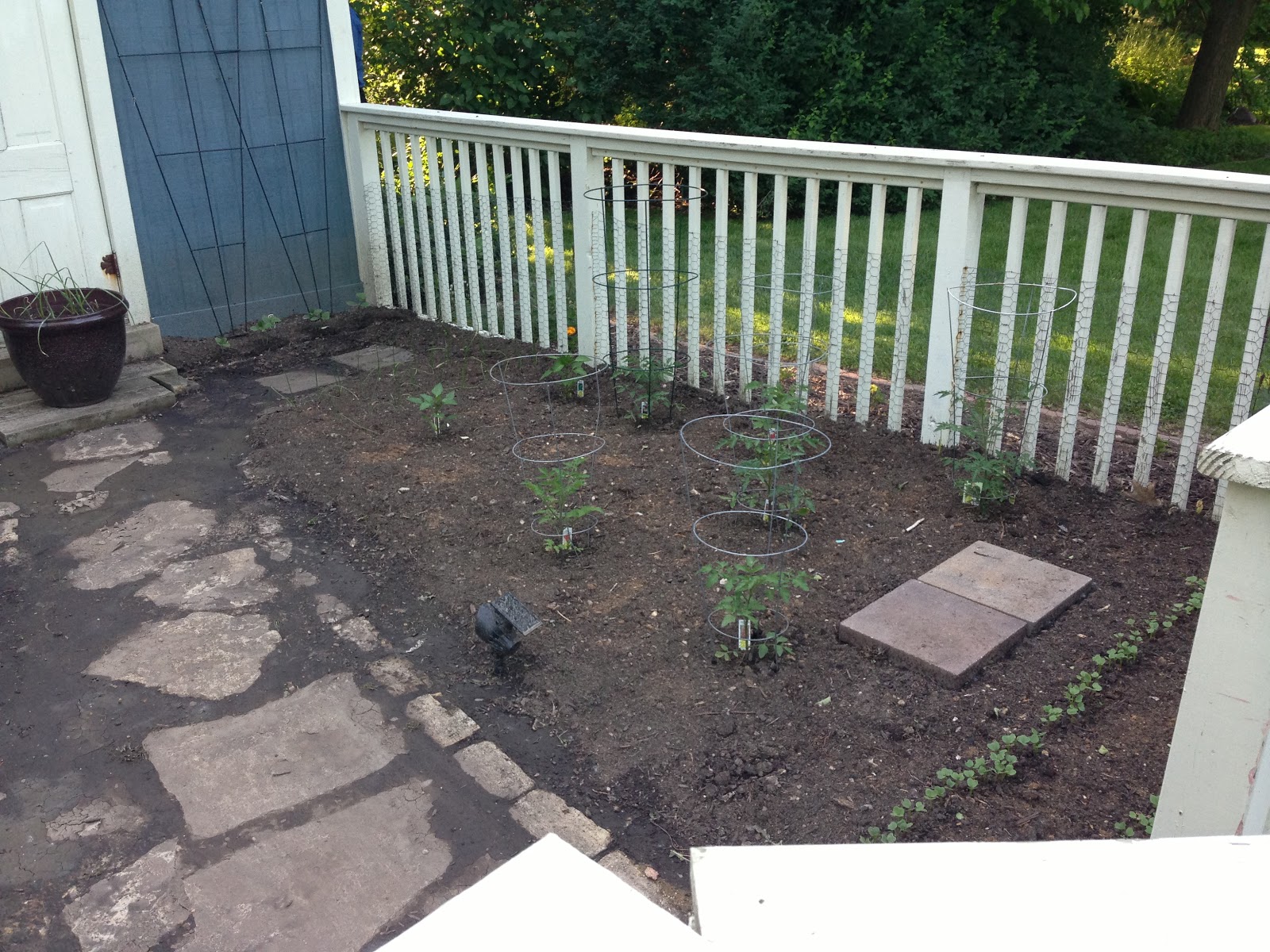 Last weekend proved the perfect opportunity for me to plant as the weather was a bit on the cool side, and the rain actually let up for a change. My husband and I spent one day just prepping the soil. While the last two years have been productive, I thought the quality of the soil needed to be improved for this year so we added several bags of mushroom compost, cow manure and garden top soil to really give the plants the food they needed.